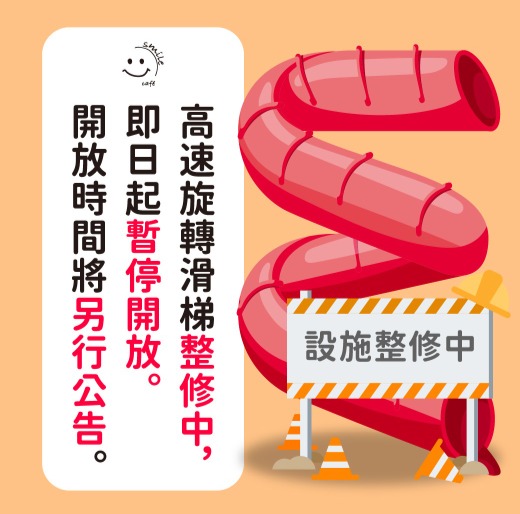 為了大小朋友的遊樂安全著想,高速旋轉滑梯設施暫停開放